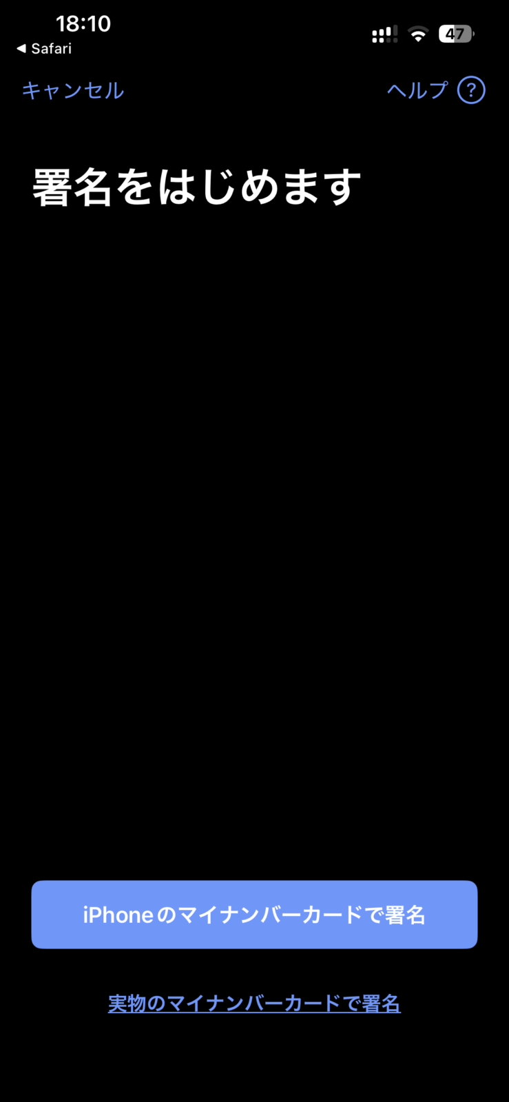 「マイナンバーカードを持っていますか?」→「はい」