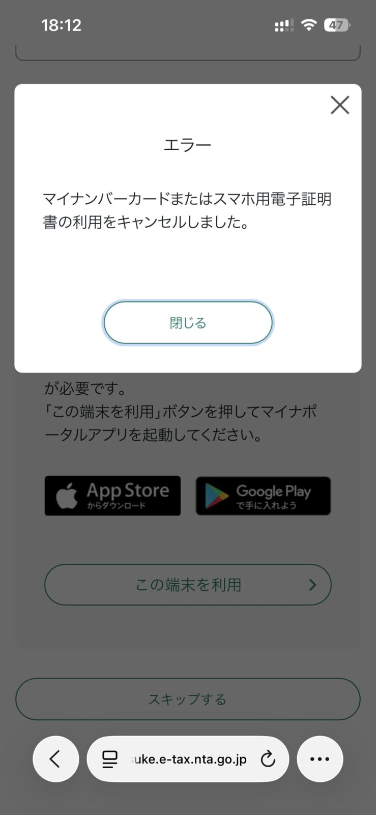 実際にやってできなかった画面がこちらです。