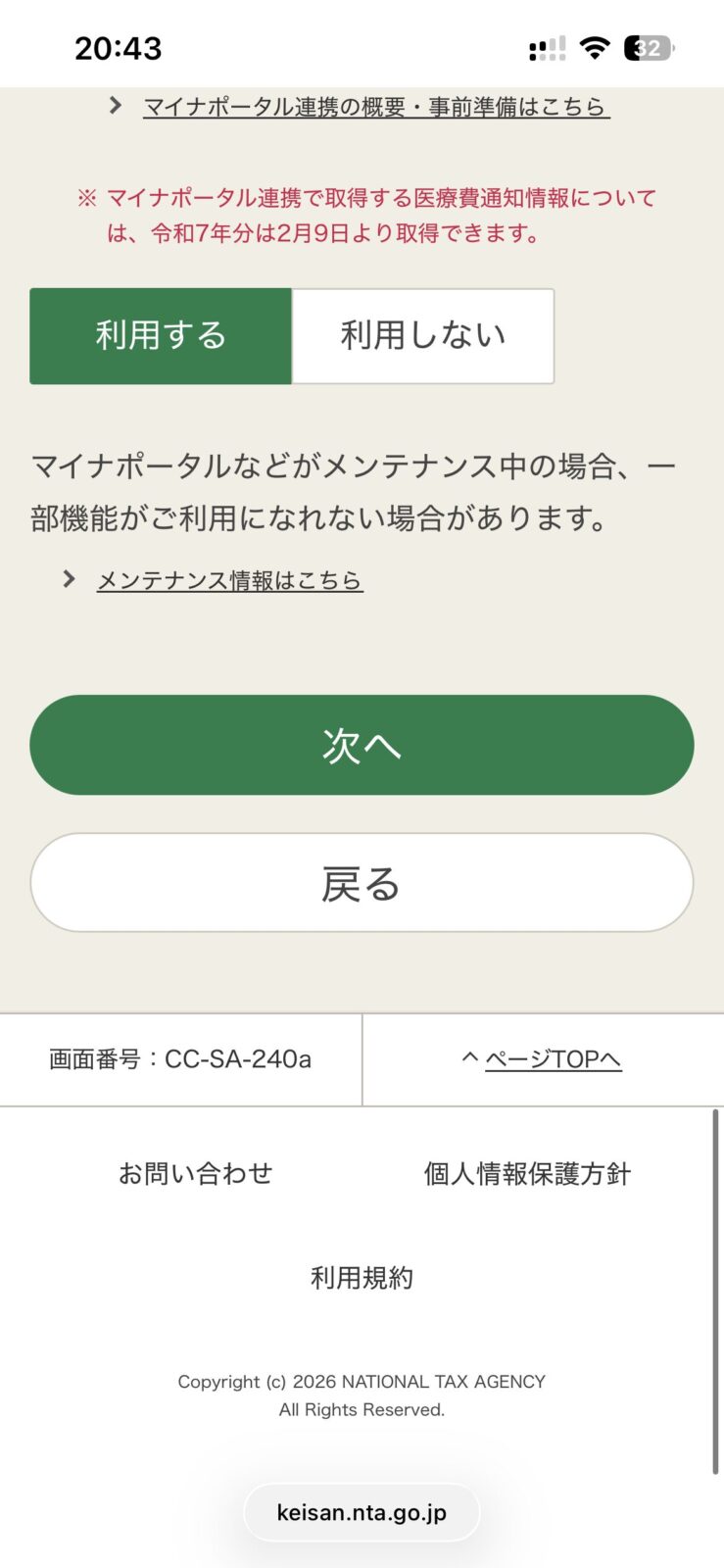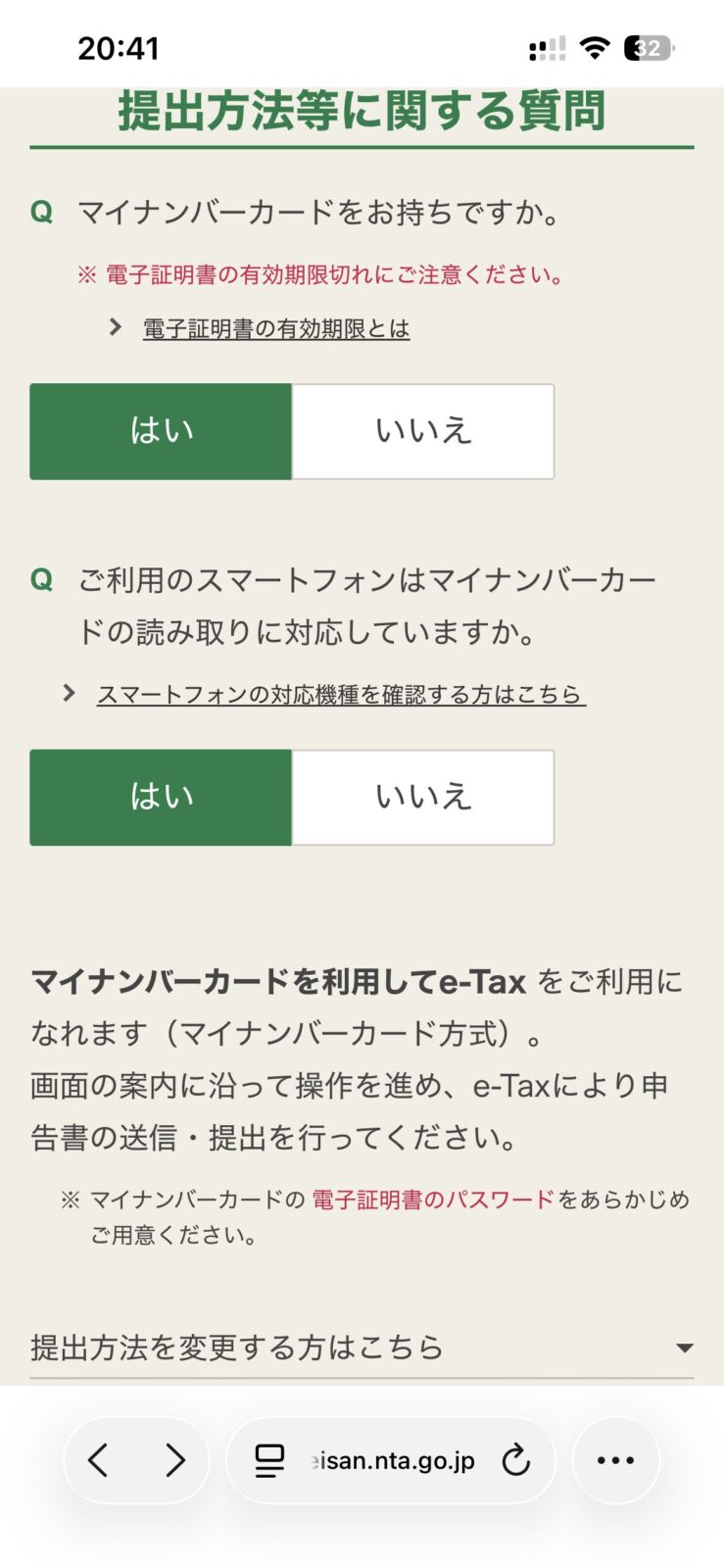 全部はいで済ませると、マイナンバーカード方式が選択され、