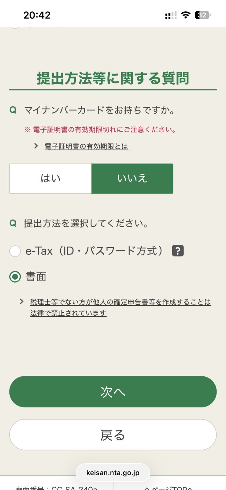 マイナンバーカード方式も、ID・パスワード方式も使えず、紙提出しか選択肢がありません。