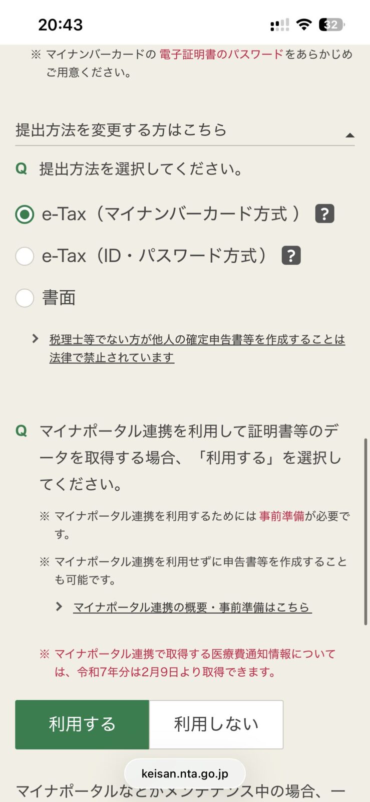 マイナンバーカード普及に伴い、ID・パスワード方式は現在利用不可