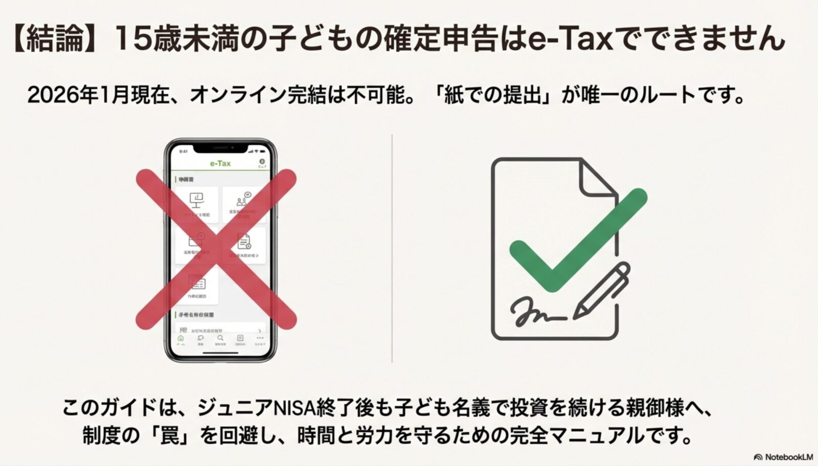 2026年1月現在、15歳未満の子どもの確定申告は、e-Taxで“完結”しない