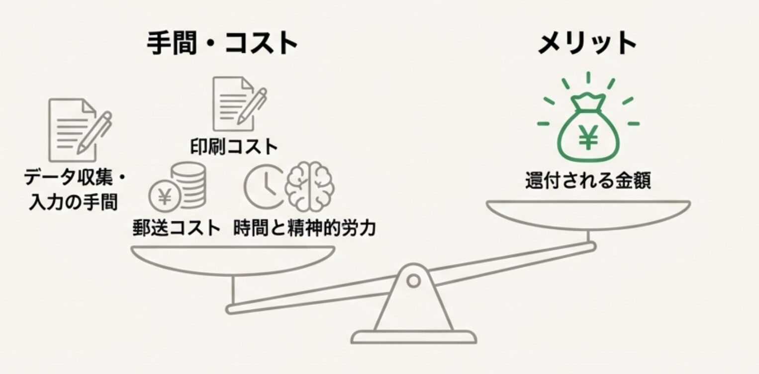 なので、データ収集・入力作業・印刷作業・提出作業を含めて