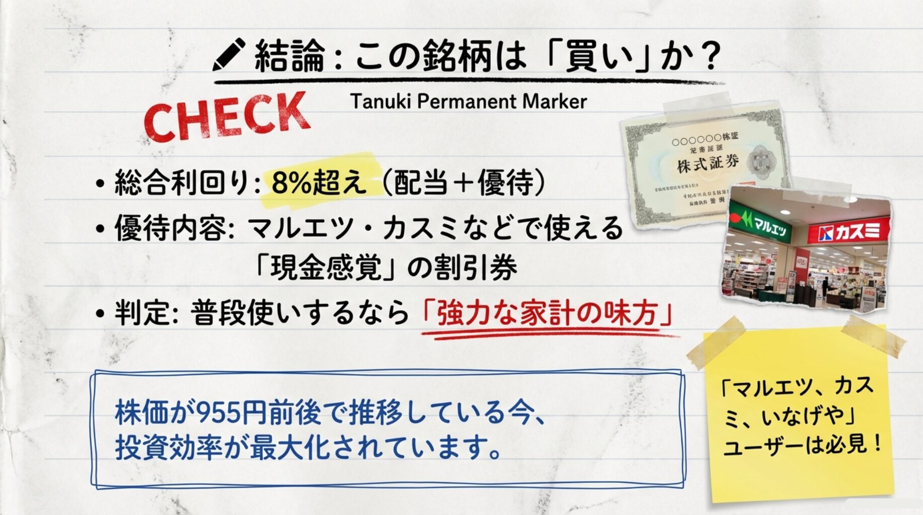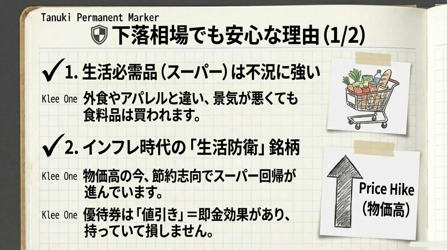“スーパー業界の安定感+優待の強さ”が両立した銘柄なんです。